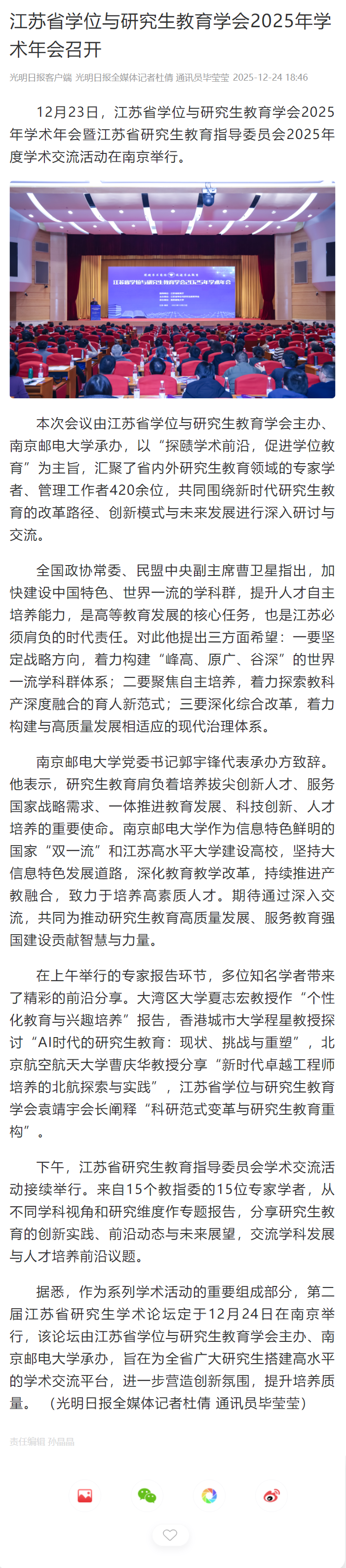| 【光明日报客户端】江苏省学位与研究生教育学会2025年学术年会召开 |