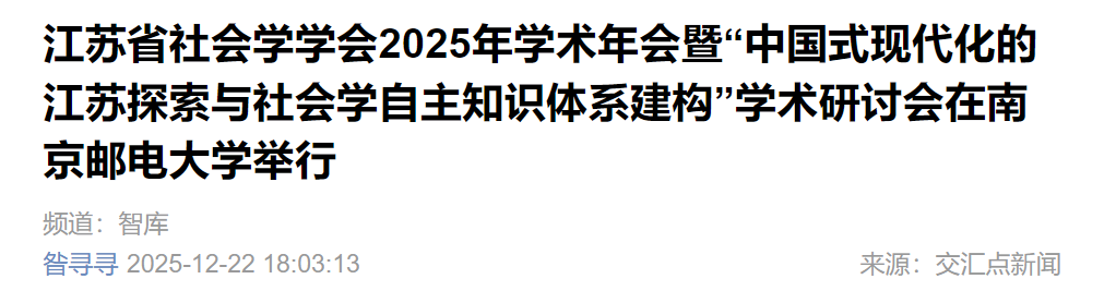 【新华日报客户端】江苏省社会学学会2025年学术年会暨“中国式现代化的江苏探索与社会学自主知识体系建构”学术研讨会在南京邮电大学举行