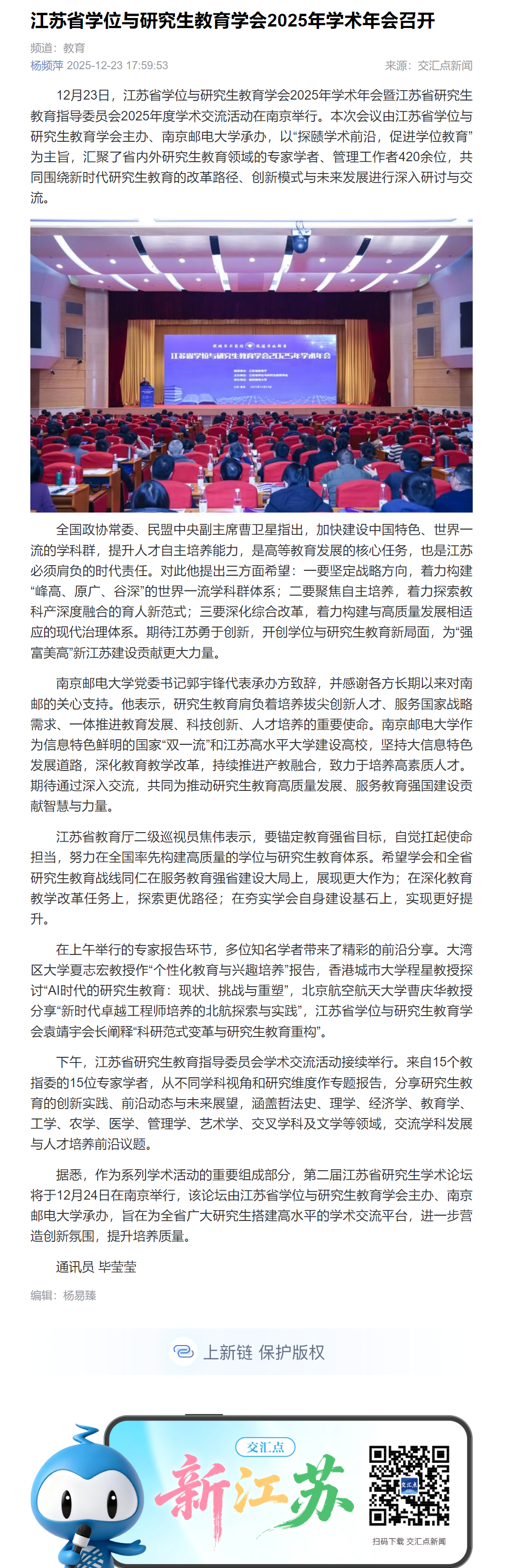 | 【新华日报客户端】江苏省学位与研究生教育学会2025年学术年会召开 |