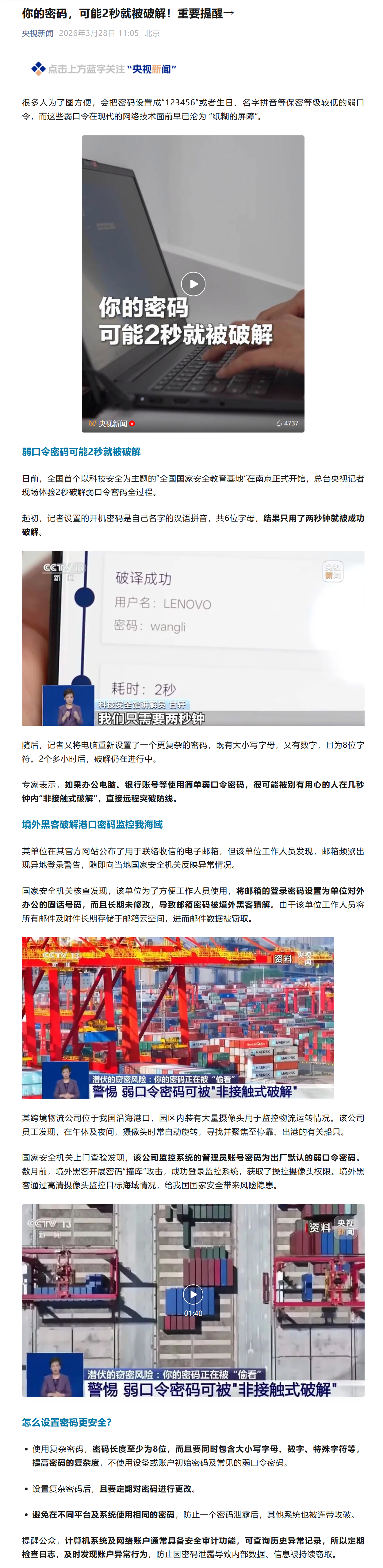 | 【CCTV-13】南邮黄海平教授解读“怎么设置密码更安全?” |