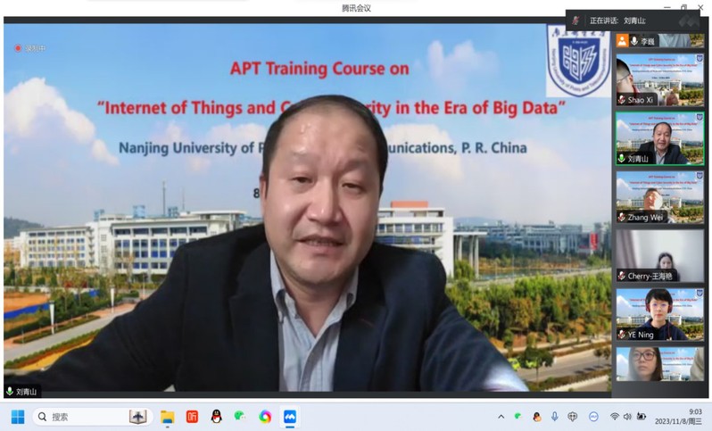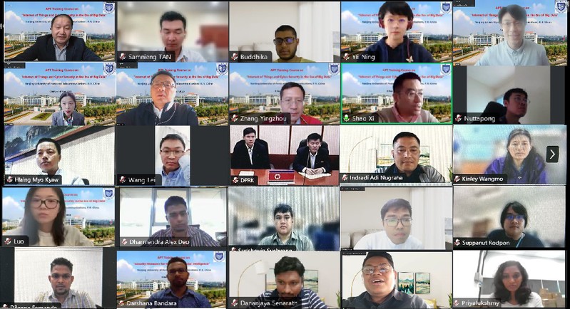 In view of the high quality and efficiency of international training our school hosted in recent years, APT arranged for our school to continue to use online teaching for this training. After last year, APT headquarters once again selected nearly 30 students to receive training in our school, the largest number among all the training centers in China, that fully demonstrating their approval and trust to our training center.Following the experiences we’ve gained, the lecturers adjusted the teaching methods, enriched the teaching materials timely, and systematically delivered to the trainees the latest knowledge of computer communications, Cyber security, Internet of things,big data,etc.In the lectures, the professors introduced numerous novel cases as well as demonstrated the application software through the online platform. Under the guidance of the teachers, trainees discussed interactively basing on their own working experience that led the atmosphere of the online classroom lively and active. Through this training, the trainees gain a more profound and comprehensive understanding of the theories and practices of the Internet of Things and Cyber Security in the Era of Big Data. Once again NJUPT fully demonstrates our excellent capability of online teaching management, which is highly praised by the trainees.